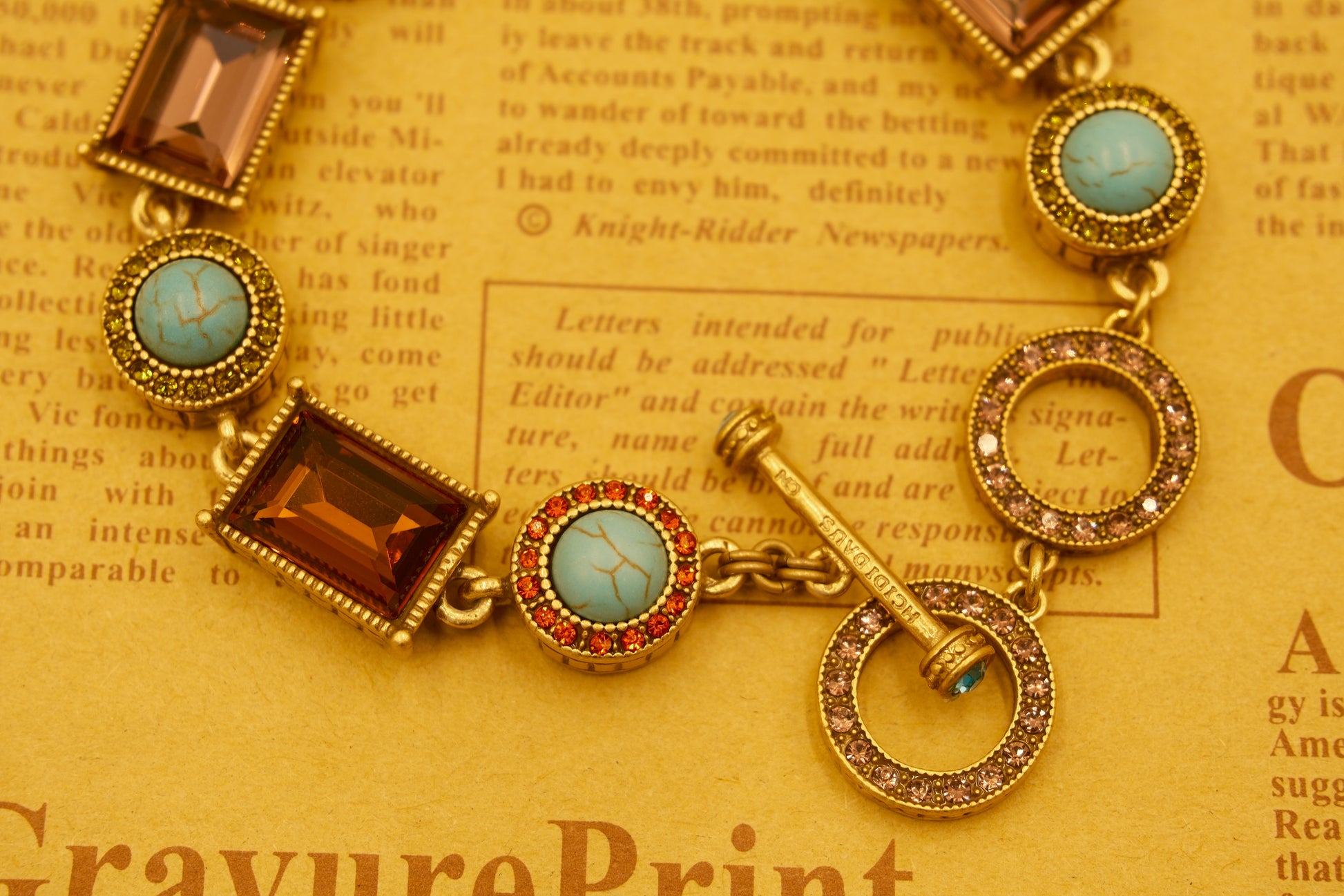 HD Turquoise Bracelet: Vintage Gold-Plated HD Copper + Amethyst + Turquoise